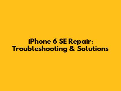 IPhone 6 SE Repair: Troubleshooting & Solutions