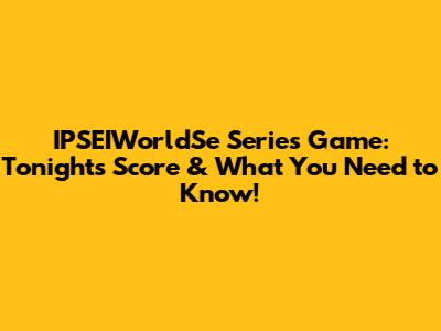 IPSEIWorldSe Series Game: Tonight's Score & What You Need To Know!