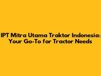 Hey there, tractor enthusiasts and folks in the agricultural biz! If you're looking for all things tractors in Indonesia, you've probably stumbled upon IPT Mitra Utama Traktor Indonesia. But what's the buzz all about? Let's dive in and break down why they're a name you should know, especially if you're in the market for tractors, parts, or services. Get ready for a deep dive that'll help you understand why IPT Mitra Utama might just be the perfect partner for your agricultural endeavors. We'll explore their offerings, their reputation, and what makes them stand out in the crowded field of agricultural equipment suppliers. Whether you're a seasoned farmer or just starting out, knowing the ins and outs of IPT Mitra Utama can be a game-changer.