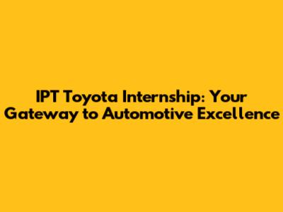 IPT Toyota Internship: Your Path To Automotive Excellence