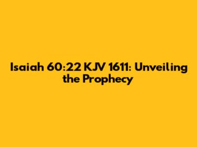 Hey guys! Let's dive deep into the fascinating world of biblical prophecy, specifically Isaiah 60:22 from the King James Version (KJV) of 1611. This verse is packed with meaning, offering a message of hope, restoration, and divine fulfillment. Understanding its context, the nuances of the language, and its historical significance can truly enrich our appreciation of this powerful passage. So, grab your Bibles (or your favorite Bible app), and let's unravel the treasures hidden within Isaiah 60:22. We will look at the original text, interpret the key phrases, and explore the verse's lasting impact on faith and belief. It's like going on a treasure hunt, only the treasure is spiritual insight and a deeper understanding of God's promises!