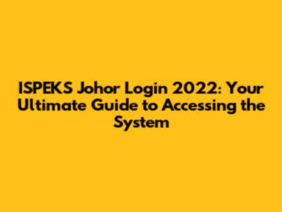 ISPEKS Johor Login 2022: Your Guide To Access