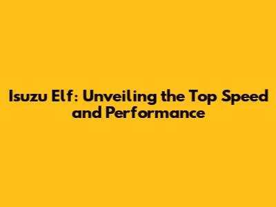 Isuzu Elf: Unveiling The Top Speed And Performance