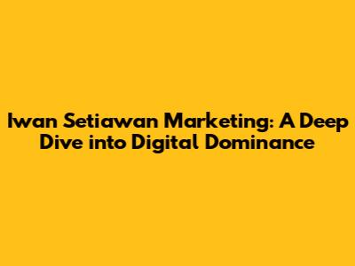 Hey guys! Let's dive into the world of Iwan Setiawan, a name synonymous with marketing brilliance. This article is your ultimate guide to understanding his strategies, gleaning insights from his successes, and maybe even implementing some of his magic into your own marketing endeavors. We're going to break down his approach, exploring how he's made such a significant impact in the digital realm. Ready to unlock some marketing secrets? Let's get started!