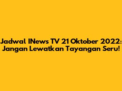 Jadwal INews TV 21 Oktober 2022: Tayangan Seru!