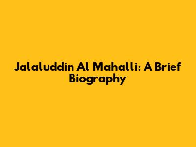 Jalaluddin Al Mahalli: A Brief Biography