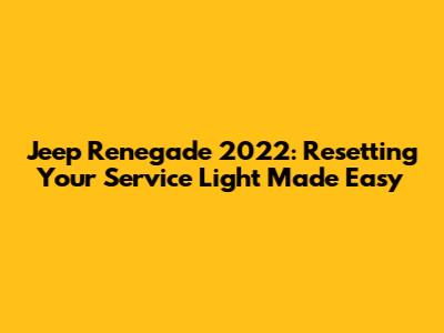 Hey guys, if you're cruising around in a Jeep Renegade 2022, you've probably noticed that pesky service light popping up on your dashboard. It's like a little reminder that your SUV needs some TLC, but sometimes, after you've handled the maintenance, that light just won't go away! Fear not, because this article is your go-to guide for Jeep Renegade 2022 service reset procedures. We're going to break down exactly how to reset the service light, so you can get back to enjoying your adventures without that nagging light staring you down. Whether you've just done an oil change, replaced your filters, or performed any other maintenance task, knowing how to reset the service light is a super handy skill for any Renegade owner. Let's dive in and make sure you're equipped with the knowledge to handle this simple task. Trust me; it's easier than you think!