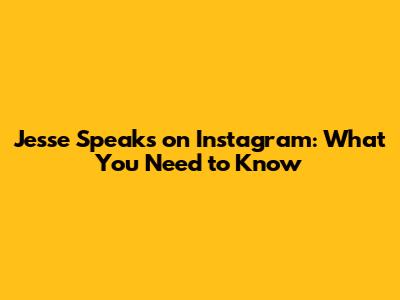 Jesse Speaks On Instagram: What You Need To Know