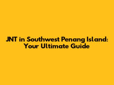JNT In Southwest Penang Island: Your Ultimate Guide