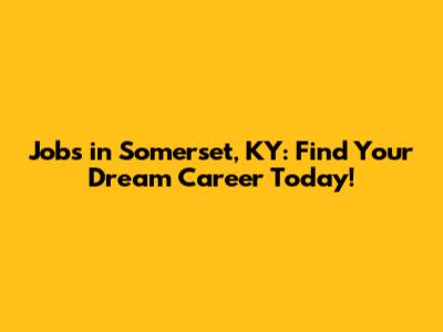 Jobs In Somerset, KY: Find Your Dream Career Today!