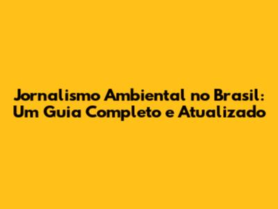 Jornalismo Ambiental No Brasil: Guia Completo E Atualizado