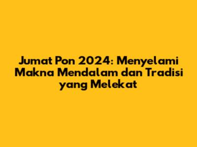 Jumat Pon bukan hanya sekadar hari dalam kalender, tetapi juga cerminan dari kekayaan budaya dan kearifan lokal yang dimiliki oleh masyarakat Jawa. Melalui perayaan Jumat Pon, kita diajak untuk terus belajar, berkembang, dan menjaga nilai-nilai luhur yang telah diwariskan oleh nenek moyang. Semoga Jumat Pon 2024 membawa kedamaian, keberkahan, dan kebahagiaan bagi kita semua.