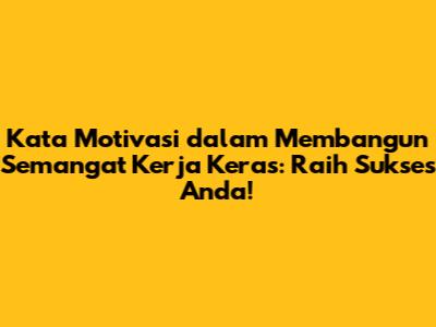 Kata motivasi dan kerja keras adalah dua sisi mata uang yang tidak terpisahkan dalam perjalanan menuju sukses. Kata motivasi memberikan semangat dan inspirasi untuk terus kerja keras, sementara kerja keras adalah wujud nyata dari motivasi yang membara. Dengan memahami kekuatan kata motivasi, membangun kebiasaan kerja keras yang efektif, dan menghadapi tantangan dengan kepala tegak, Anda akan lebih dekat dengan tujuan Anda. Ingatlah, sukses bukanlah tujuan akhir, tetapi sebuah perjalanan. Nikmati setiap langkah dalam perjalanan Anda, dan jangan pernah berhenti untuk belajar dan berkembang. Teruslah mencari inspirasi, tetap termotivasi, dan teruslah kerja keras. Sukses menanti Anda!