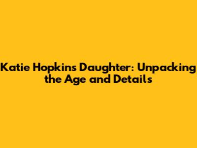Hey guys! Let's dive into something that might pique your curiosity: the age of Katie Hopkins' daughter. It's a bit of a tricky subject because, honestly, Katie herself is pretty private about her children. However, we can piece together some information to get a good idea. Katie Hopkins' daughter's age is something many people wonder about, especially given her public persona. While definitive, up-to-the-minute details aren't always readily available, we can look at what's been shared over the years to make an educated guess. It's important to remember that celebrity children often get a shield from the spotlight, and that's usually for the best, right? Protecting their privacy is key, and Hopkins, despite her own outspoken nature, seems to apply this to her family life. So, while we can't pinpoint an exact birthdate with absolute certainty for public consumption, we can certainly explore the available clues and discuss why this information might be sought after. The public's fascination with celebrities extends to their families, and understanding the age of a public figure's child can sometimes be a way for people to relate or simply satisfy their curiosity. We'll aim to provide the most accurate information possible based on public records and past statements, all while respecting the privacy that Katie Hopkins herself likely desires for her daughter. Get ready to explore the details, folks!