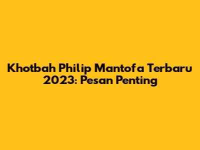 Khotbah Philip Mantofa Terbaru 2023: Pesan Penting