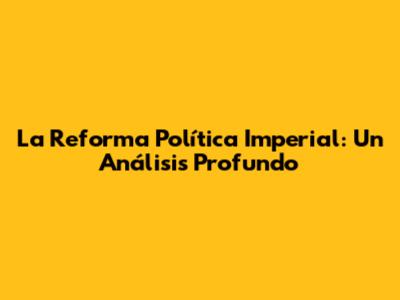 La Reforma Política Imperial: Un Análisis Profundo