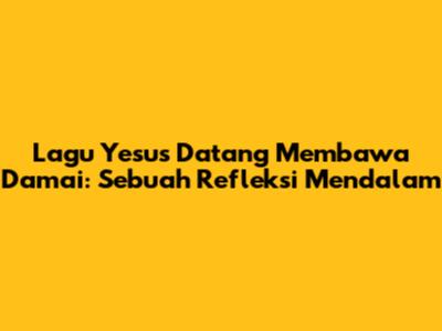 Lagu Yesus Datang Membawa Damai adalah sebuah ungkapan iman yang kaya akan makna. Guys, lagu ini bukan sekadar rangkaian nada dan lirik, melainkan sebuah pernyataan iman yang mendalam tentang kedatangan Yesus Kristus. Kedatangan-Nya membawa damai, sukacita, dan harapan bagi seluruh umat manusia. Lagu ini seringkali dinyanyikan dalam berbagai acara keagamaan, baik di gereja maupun dalam persekutuan doa. Mari kita bedah lebih dalam mengenai makna, pengaruh, dan harapan yang terkandung dalam lagu ini, oke?
