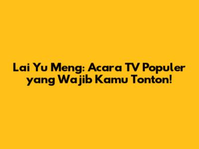 Lai Yu Meng adalah sosok yang sangat penting dalam dunia pertelevisian Indonesia. Acara-acaranya selalu ditunggu-tunggu oleh para penggemar karena menghibur, informatif, dan menginspirasi. Jika kalian belum pernah menonton acara Lai Yu Meng, segera coba tonton salah satu acaranya. Dijamin, kalian akan ketagihan! Jangan lewatkan juga informasi terbaru mengenai jadwal tayang, behind-the-scenes, dan interaksi lainnya melalui media sosial dan komunitas penggemar. Selamat menikmati acara-acara Lai Yu Meng!