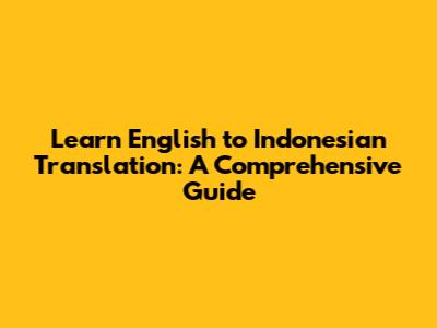 Learn English To Indonesian Translation: A Comprehensive Guide