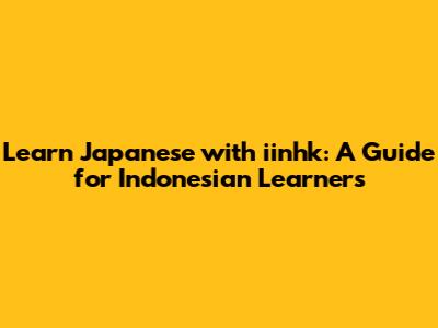Learn Japanese With Iinhk: A Guide For Indonesian Learners