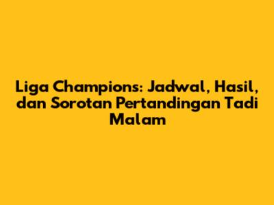 Hai guys! Kalian para penggemar sepak bola pasti selalu mengikuti perkembangan Liga Champions, kan? Nah, artikel ini hadir untuk memberikan informasi lengkap mengenai jadwal Liga Champions tadi malam, hasil pertandingan, dan sorotan menarik yang terjadi di lapangan hijau. Kami akan membahas secara mendalam agar kalian tidak ketinggalan berita terbaru dari kompetisi sepak bola paling bergengsi di Eropa ini. Mari kita simak bersama!