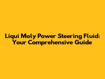 Liqui Moly Power Steering Fluid: All You Need To Know