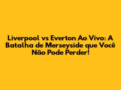 Onde Assistir Liverpool vs Everton ao Vivo: Não Perca Nenhum Detalhe