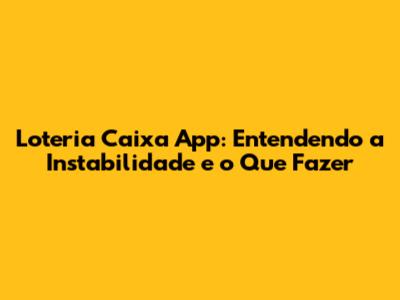 Por Que o Aplicativo Loterias Caixa Apresenta Instabilidade?