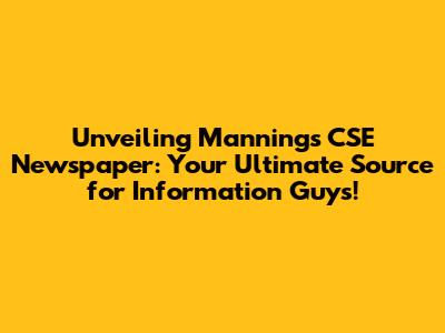 Unveiling Manning's CSE Newspaper: Your Ultimate Source for Information Guys!