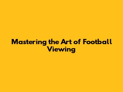 Mastering The Art Of Football Viewing