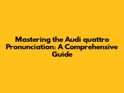 Mastering The Audi Quattro Pronunciation