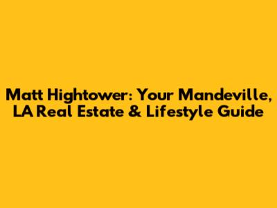 Hey there, future Mandeville residents and curious onlookers! Let's dive into the world of Matt Hightower, your go-to guru for all things Mandeville, Louisiana. This isn't just about real estate, folks; it's about embracing a lifestyle. Think sunny days, friendly neighbors, and a community that welcomes you with open arms. Whether you're a first-time homebuyer, looking to upgrade, or just curious about what makes Mandeville so special, you've come to the right place. We're going to explore what makes Matt Hightower a trusted name in the area, and why Mandeville might just be the perfect place to call home.