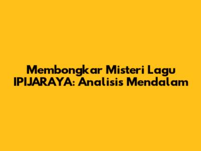 Mengungkap Makna Mendalam Di Balik Lagu IPIJARAYA