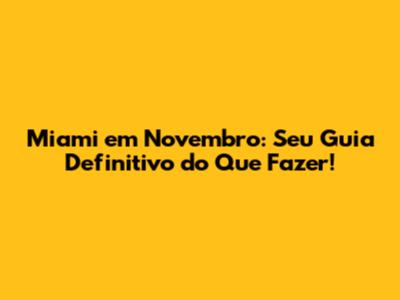 E aí, turma! Se você está planejando uma viagem para Miami em novembro, pode preparar a mala e o protetor solar, porque você está prestes a embarcar em uma experiência incrível. Novembro é um mês espetacular para visitar a cidade, com um clima agradável, menos multidões do que na alta temporada e uma infinidade de atividades para todos os gostos. Neste guia completo, vamos mergulhar nas melhores coisas para fazer em Miami durante o mês de novembro, desde as praias paradisíacas e a vida noturna agitada até os eventos culturais e as compras irresistíveis. Então, prepare-se para descobrir tudo o que Miami tem a oferecer neste mês mágico!