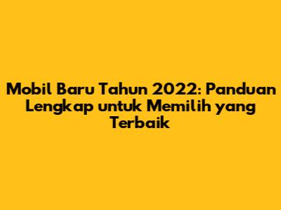 Mobil Baru 2022: Pilihan Terbaik & Tips Membeli!