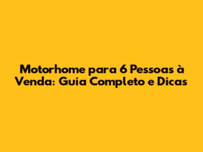 Motorhome Para 6 Pessoas À Venda: Guia Completo E Dicas