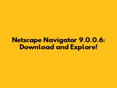 Netscape Navigator 9.0.0.6: Download And Explore!