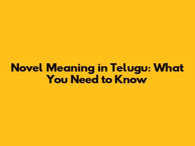 Novel Meaning In Telugu: What You Need To Know