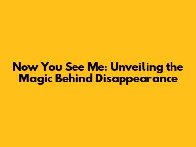 Now You See Me: Unveiling The Magic Behind Disappearance