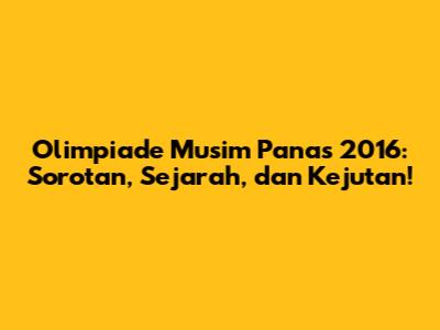 Olimpiade Musim Panas 2016 di Rio de Janeiro menjadi ajang olahraga yang tak terlupakan, dengan momen-momen yang menginspirasi, kejutan, dan prestasi luar biasa. Dari upacara pembukaan yang spektakuler hingga kompetisi olahraga yang sengit, Olimpiade 2016 menjadi perayaan semangat olahraga, persahabatan, dan persatuan.