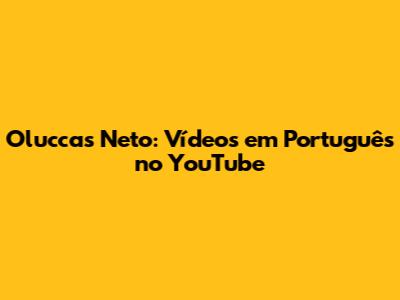 Hey galera! Ever heard of Oluccas Neto? If you're looking for awesome, fun, and engaging content in Portuguese on YouTube, then you've definitely come to the right place. Oluccas Neto has become a massive hit with kids and families, and we're going to dive deep into what makes his channel so special and why it's worth checking out.