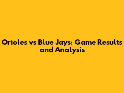 Orioles Vs Blue Jays: Game Results And Analysis