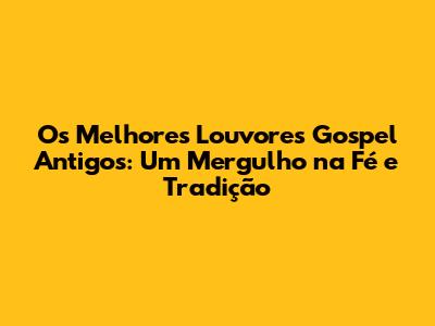 Os Melhores Louvores Gospel Antigos: Um Mergulho Na Fé E Tradição