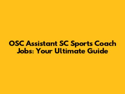 OSC Assistant SC Sports Coach Jobs: Your Guide