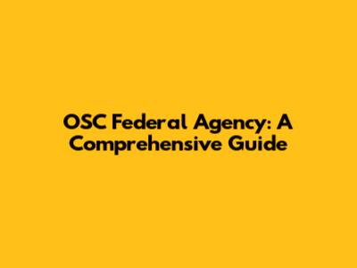 OSC Federal Agency: A Comprehensive Guide