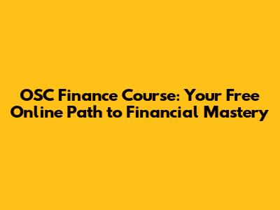 OSC Finance Course: Your Free Online Path To Financial Mastery