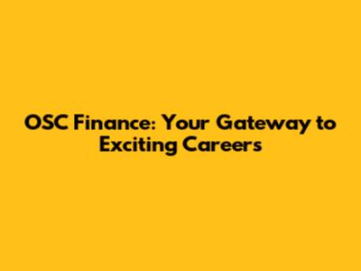 OSC Finance: Your Gateway To Exciting Careers