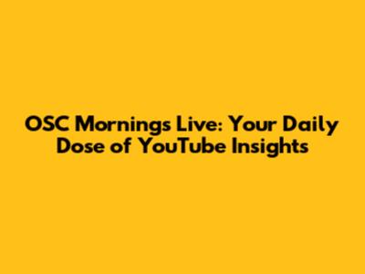 Hey guys! Are you ready to dive into the exciting world of OSC Mornings Live? We're talking about the ultimate source for your daily dose of YouTube insights. If you're a content creator, a marketing guru, or just someone who loves the platform, you're in the right place. Today, we'll break down everything you need to know about OSC Mornings, where to find it, and why it's a must-watch for anyone serious about YouTube success. So, grab your coffee, sit back, and let's get started.