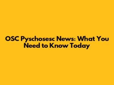 OSC Pyschosesc News: What You Need To Know Today