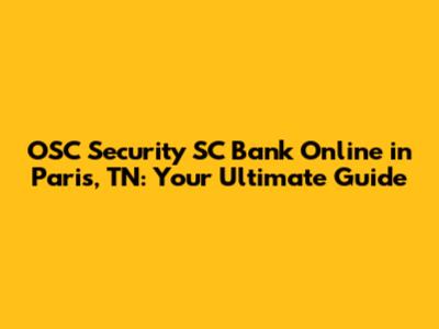 OSC Security SC Bank Online In Paris, TN: A Comprehensive Guide